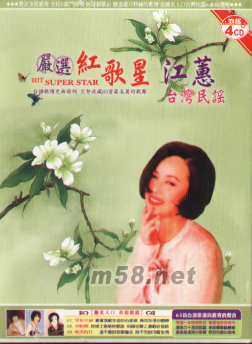 嚴(yán)選紅歌星 江蕙 臺(tái)灣民謠(臺(tái)灣版)(m58.net) 真正全民新聲 全民K歌斗陣唱 四連霸歌后歷盡歲月粹練的歌聲 最膾炙人中臺(tái)灣民謠K歌精選輯 臺(tái)語歌壇史無前例 完整收藏63首最美麗的歌聲 63首臺(tái)語歌壇尚蓋青的聲音 乘著一葉悅音輕舟 輕靈地感受美好 渲染力十足的民謠 來詮釋情路顛簸 寶島最溫潤的歌聲 歌后百媚的風(fēng)情 全民K歌斗陣唱 四連霸歌后江蕙尚用心最膾炙人口臺(tái)灣民謠精選輯 63首最優(yōu)好歌 歷盡歲月粹練的歌聲 最溫潤的歌聲 綻放最大的感動(dòng) 渲染力十足的臺(tái)灣民謠 詮釋情路顛簸的情緒 精致溫暖娓婉椎人心肝 咱臺(tái)語歌的驕傲最美麗的歌聲 金曲天后江蕙全年度臺(tái)灣民謠K歌鉅作 為2300萬臺(tái)灣人憶起被遺忘的時(shí)光 江蕙世紀(jì)臺(tái)灣民謠紅歌 情意深刻直擊人心
