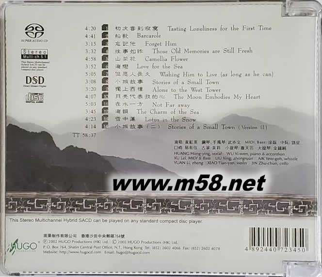 01. 初次嘗到寂寞 Tasting Loneliness for the First Time 02. 船歌 Barcarole 03. 忘記他 Forget Him 04. 往事如昨 Those Old Memories are Still Fresh 05. 山茶花 Camellia Flower 06. 海戀 Love for the Sea 07. 但愿人長(zhǎng)久 Wishing Him to Live(as long as he can) 08. 小城故事 Stories of a Small Town 09. 獨(dú)上西樓 Alone to the West Tower 10. 月亮代表我的心 The Moon Embodies My Heart 11. 在水一方 Not Far away 12. 海韻 The Charm of the Sea 13. 雪中蓮 Lotus in the Snow 14. 小城故事(二) Stories of a Small Town(VersionⅡ)