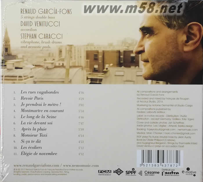 發(fā)燒牛筋 法式感覺(jué) 發(fā)燒牛筋手風(fēng)琴 Renaud Garcia-Fons - La Vie Devant Soi專(zhuān)輯背面圖片