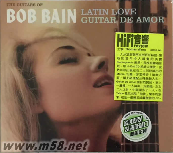 拉丁之愛 西班牙吉它 Latin Love + Guitar De Amor HIFI 音響推介(m58.net) 他的名字可能不太熟悉,但雅致的吉他風格,征服數以百萬計的心。Bob Bain (鮑勃。貝恩)奠定了自我的風格,一個自然的,旋律優美的聲音。這張二合一專輯2LPs on 1CD,純吉他演奏,兩張著名作品,包括柔情似水之Latin Love及西班牙味十足之Guitar De Amor