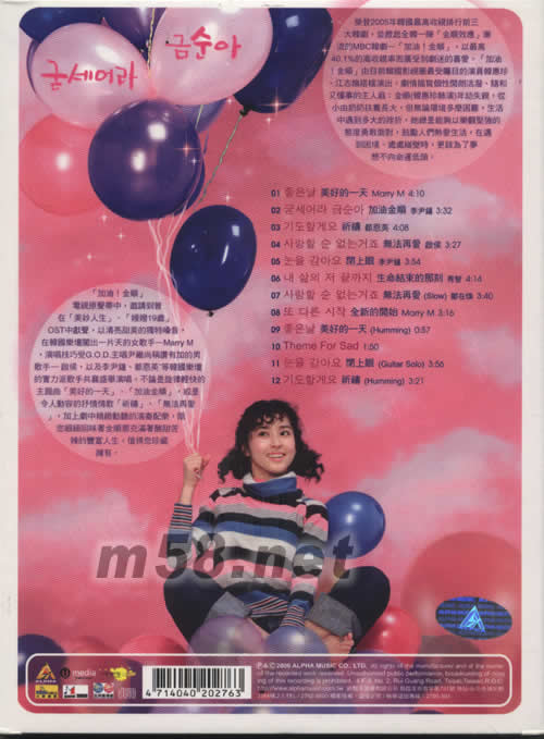 價(jià)格為估,以實(shí)到貨為準(zhǔn)! 加油!金順電視原聲(m58.net) 八大戲劇臺(tái)2006年開春第一強(qiáng)打!2005年韓國(guó)最高收視前三大韓劇 榮登2005年韓國(guó)最高收視排行前三大韓劇,并掀起全韓一陣[金順效應(yīng)]潮流的MBC韓劇--[加油!金順],以最高40.1%的高收視率而廣受到劇迷的喜愛。[加油!金順]由目前韓國(guó)影視圈最受矚目的演員韓惠珍、江志煥搭檔演出。劇情描寫個(gè)性開朗活潑,隨和又懂事的主人翁:金順(韓惠珍飾演)年幼失親,從小由奶奶撫養(yǎng)長(zhǎng)大,但無(wú)論環(huán)境多么困難,生活中遇到多大挫折,她總是能夠以樂觀堅(jiān)強(qiáng)的態(tài)度勇敢面對(duì),鼓勵(lì)人們熱愛生活,在遇到困難、處處碰壁時(shí),更該為了夢(mèng)想不向命運(yùn)低頭。 [加油!金順]電視原聲帶中,邀請(qǐng)到曾在[美妙人生]、[嫂嫂19歲]OST中獻(xiàn)聲,以清亮甜美的獨(dú)特嗓音,在韓國(guó)樂壇闖出一片天的女歌手--Marry M,演唱技巧受G.O.D.主唱尹繼尚稱贊有加的男歌手--啟侯,以及李尹鐘、都恩英等韓國(guó)樂壇的實(shí)力派歌手共襄盛舉演唱。不論是旋律輕快的主題曲[美好的一天]、[加油金順],或是令人動(dòng)容的抒情情歌[祈禱]、[無(wú)法再愛],加上劇中精致動(dòng)聽的演奏配樂,陪您細(xì)細(xì)回味著金順那充滿著酸甜苦辣的豐富人生,值得您珍藏?fù)碛小?br>
