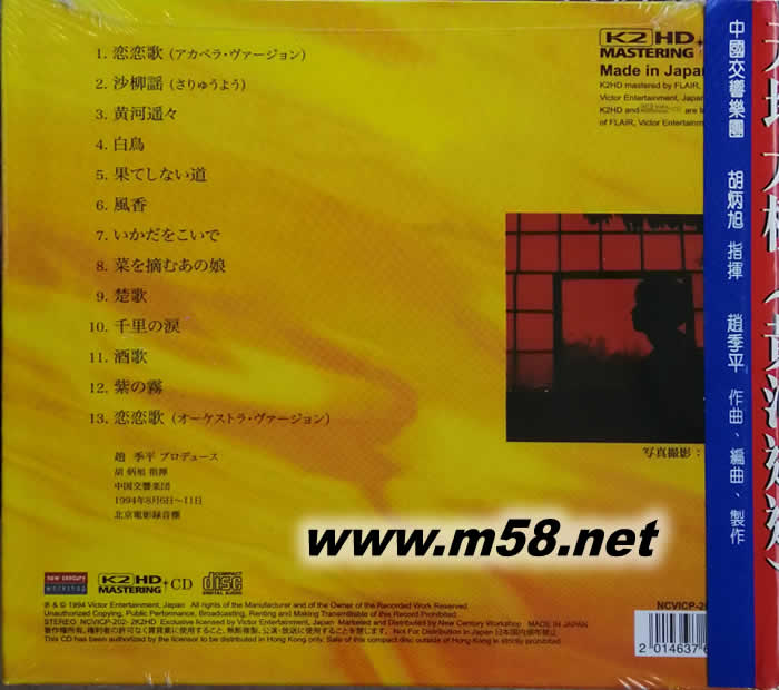 (1)戀戀歌(アカペラ?ヴァージョン) (2)沙柳謡(さりゅうよう) (3)黃河遙々 (4)白鳥 (5)果てしない道 (6)風香 (7)いかだをこいで (8)菜を摘むあの娘 (9)楚歌 (10)千里の涙 (11)酒歌 (12)紫の霧 (13)戀戀歌(オーケストラ?ヴァージョン)