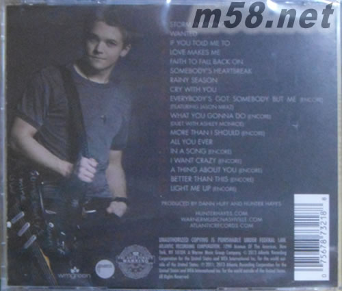 首張同名專輯 (安可加值版) HUNTER HAYES (ENCORE) (US VER)(m58.net) 抱回CMA鄉(xiāng)村音樂獎的《年度新人》大獎、拿下全美青少年票選獎《最佳鄉(xiāng)村男藝人》頭銜,入圍6座全美音樂獎+3座葛萊美獎+ 2座CMT鄉(xiāng)村音樂獎的鄉(xiāng)村界耀眼新星! * 登記告示牌鄉(xiāng)村榜冠軍+流行榜第7名的金唱片專輯,安可加值版獨(dú)家收錄分別與『音樂大玩童』Jason Mraz和才女Ashley Monroe合作的對唱曲,並加收5首全新創(chuàng)作曲! * 囊括「Storm Warning」、「Wanted」、「Somebody`s Heartbreak」、「I Want Crazy」等4首排行金曲! 鄉(xiāng)村界近期出了許多國民小天后,也多的是熟男身影,卻少有像Hunter Hayes這般年輕又兼具偶像魅力與實(shí)力的耀眼新星,現(xiàn)年22歲的他,不僅有著燦爛笑容、可以演奏多項(xiàng)樂器,自2011年出道至今短短不到兩年的時間,不僅已入圍6座全美音樂獎+3座葛萊美獎+ 2座CMT鄉(xiāng)村音樂獎,更抱回CMA鄉(xiāng)村音樂獎的《年度新人》大獎、拿下全美青少年票選獎(Teen Choice Awards)的《最佳鄉(xiāng)村男藝人》頭銜,以「Wanted」一曲榮獲2010年設(shè)立的ACA美國鄉(xiāng)村音樂獎-新人項(xiàng)目的《年度單曲》和《年度音樂錄影帶》雙項(xiàng)大獎喝采。此外,Hunter還繼Michael Jackson Madonna, Britney Spears之后,成為最新的百事可樂代言人! 1991年9月9日出生路易斯安納州的Hunter Hayes,兩歲時,因祖母所送的一臺玩具手風(fēng)琴而開啟對音樂的好奇心,4歲就登臺表演,可愛的外型加上穩(wěn)健的臺風(fēng)與實(shí)力,獲得許多好評,也讓曾演出【教父】系列、【驚天動地60秒】等大片的好萊塢硬漢演員勞勃•杜瓦(Robert Duvall)激賞不已,於Hunter六歲時送上一把吉他。7歲就展現(xiàn)大將之風(fēng),進(jìn)入白宮在柯林頓總統(tǒng)面前表演!2000年之后,Hunter陸續(xù)於獨(dú)立界發(fā)行多張專輯,作品也被選入多部電影和電視劇集中,受邀擔(dān)任Taylor Swift、Rascal Flatts、Carrie Underwood等鄉(xiāng)村界當(dāng)紅歌手團(tuán)體的開場佳賓! 2011年簽入Atlantic Nashville旗下所發(fā)行的首張國際同名大碟“Hunter Hayes”,不負(fù)眾望的登記告示牌鄉(xiāng)村榜冠軍+流行榜第7名,快速獲頒金唱片銷售認(rèn)證,直逼百萬門檻!此安可加值版,除了珍藏9首原始錄音歌曲、重新灌錄「More Than I Should」一曲、並分別與『音樂大玩童』Jason Mraz和才女Ashley Monroe合作,將「Everybody`s Got Somebody But Me」、「What You Gonna Do」改為全新對唱版本外,還一口氣多加了包括最新單曲「I Want Crazy」在內(nèi)的5首全新創(chuàng)作!開場的「Storm Warning」,配置過癮的鄉(xiāng)村搖滾曲調(diào),大搖大擺的攀上鄉(xiāng)村榜第14名,獲頒金唱片銷售,也是敲起知名度的首波主打;再接再厲的「Wanted」,利用優(yōu)美鋼琴作指引,是首動人的抒情佳曲,不僅在美國狂銷超過317萬張、拿下鄉(xiāng)村榜冠軍,更讓他入圍葛萊美《最佳鄉(xiāng)村藝人》大獎;以吉他為主調(diào)的「Somebody`s Heartbreak」,配置曼陀林的曼妙輔佐,流行的順暢旋律十足討喜,登記鄉(xiāng)村榜NO.7、鄉(xiāng)村電臺點(diǎn)播冠軍,並再度拿下金唱片認(rèn)證;新收錄的單曲「I Want Crazy」,也快速銷售衝破百萬門檻,直奔鄉(xiāng)村榜亞軍;還有搖擺快歌「A Thing About You」、中版優(yōu)選「Better Than This」,都是極具排行潛力的新作!
