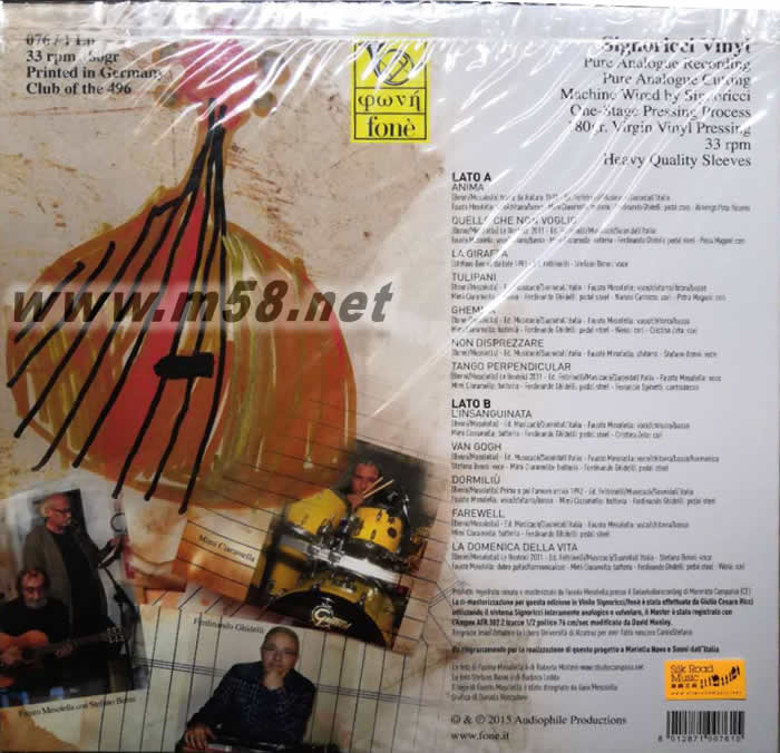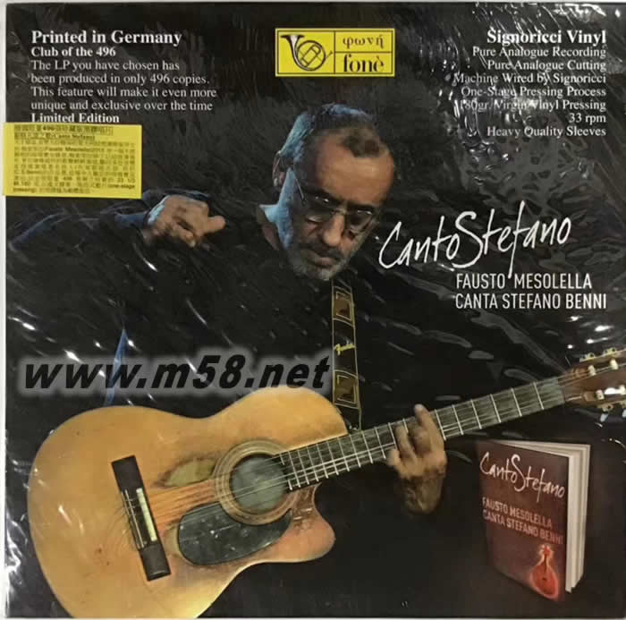 斯特凡諾之歌 180g 33RPM LP 黑膠 限量版(m58.net) 天才橫溢,音樂天份極高的意大利結他演奏家、作曲家和編曲家浮士托.梅索萊拉(Fausto Mesolella)從12歲首次接觸結他后便與此樂器結下了不解緣,使他在音樂路途踏上青云,贏得不少讚頌和稱譽,他出色的指彈技巧和對音樂的熱情使他屢次被獲邀與國際著名音樂家包括加布里埃拉.費里(GabriellaFerri)、 安德烈.波切利(Andrea Bocelli)、保羅.康特(Paolo Conte)和弗朗西斯科.特里卡里科(Francesco Tricarico)等合作演出,同時多次被邀在著名的圣雷莫音樂節(Festival di Sanremo)作示范演奏,其受專業界別的重視可想而知。梅索萊拉亦有自組樂隊「地中海(i Mediterranea)」作公開演出和錄製專輯,足跡遍及全歐洲及日本多地,極受歡迎。他亦曾為多套電影作配樂,不少曾參加著名的電影節包括威尼斯影展,獲得好評如潮,奠定他在國際樂壇崇高的地位。 2015年由梅索萊拉一個不經刪剪的現場實況錄音,梅索萊拉除了以結他演奏外,更以嗆嗓感性的歌聲輕輕演唱,分別聯同腳踏板鋼棒結他(pedal steel)演奏家迪南道.吉戴利(Frediando Ghidell)、低音提琴手 費魯斯喬.史比納堤(Ferruccio Spinetti)、女歌手佩特拉.瑪歌妮(Petra Magoni)等現場演唱著名詩人/作家斯諾凡諾.班尼(Canta Stefano Benni)的作品選, 這場令人難忘的現場實況演出,現由以製作頂級錄音而馳名國際的「豐力(fone)」其著名錄音師里茲(Giulio Cesare Ricci)採用經由錄音界奇才大衛.曼尼(David Manley)修訂之模擬錄音系統(analogue recording)包括採用Ampex ATR102兩軌盤式錄音座以1/2吋開盤磁帶,76/cm/sec轉速載原音源製作純模擬母盤, 分別配以SACD及全球限量 496套極之珍貴的33 1/3轉,180克,以處女膠單一階段式壓片(one-stage pressing) 的黑膠盤為載體推出。