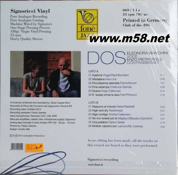 恩佐 皮埃特羅帕里及愛蓮娜 比安切妮 [二](Enzo Pietropaoli & Eleonora Bianchini [Dos]黑膠(m58.net) 意大利殿堂級低音大提琴手 Enzo Pietropaoli 「牛筋」原味十足的現(xiàn)代爵士樂典范示范盤 分別以 及 德國限量珍藏版黑膠唱片 推出