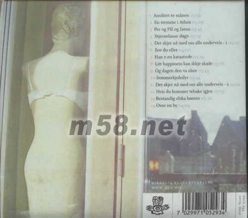 OVER EN BY玫瑰仙子(m58.net) 發(fā)燒界天后(玫瑰仙子)KARI BREMNES 演繹多首挪威作品,以一貫靜絕的美聲獻(xiàn)唱出清新的清懷,悅耳動(dòng)聽令人回味。天碟錄音師JAN ERIK KONGSHAUG 錄制,如在目前的起靚聲女聲天碟。