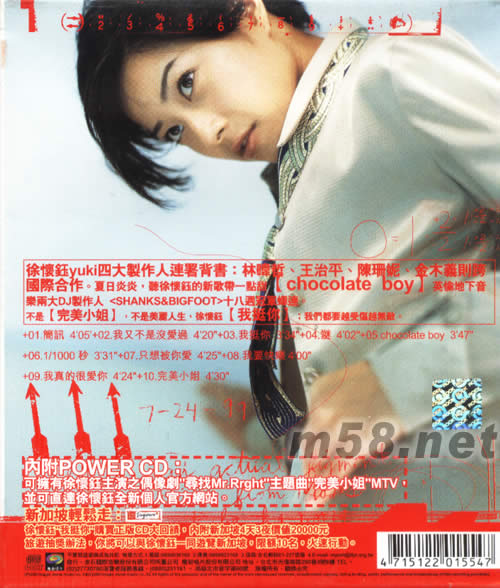 MISS RIGHT(m58.net) 專輯是由林暐哲擔任音樂總監,王治平、陳珊妮、金木義則共同制作,曾經批評徐懷鈺的‘Tiamo’是爛歌的陳珊妮,這回不僅幫徐懷鈺制作專輯,還幫徐懷鈺寫了一首‘完美小姐’這首歌也是徐懷鈺主演的偶像劇‘尋找Mr. Right’的片頭主題曲。專輯中的‘Chocolate Boy’和‘我挺你’這兩首歌是翻唱英國名DJ兼制作人Shanks & Bigfood的成名作‘Sweet Like Chocolate’和‘Sing Alone’這兩首歌曾在英國蟬聯排行榜達十八周之久,并引領了英國舞廳的‘two steps’ 風潮,徐懷鈺的翻唱不但保有原曲的味道,同時也展現了更為成熟的唱功。 這張專輯是徐懷鈺加入魔巖唱片之后推出的《Miss Right》專輯,也是徐懷鈺自己參與最多的一張專輯,從視覺到音樂,她個人提供了很多想法,尤其在服裝造型方面,徐懷鈺邀請到她在‘超級星期天’節目中找尋到的國中家教老師苗青為她量身訂做,呈現出性感又成熟的新樣貌,令人眼睛為之一亮。