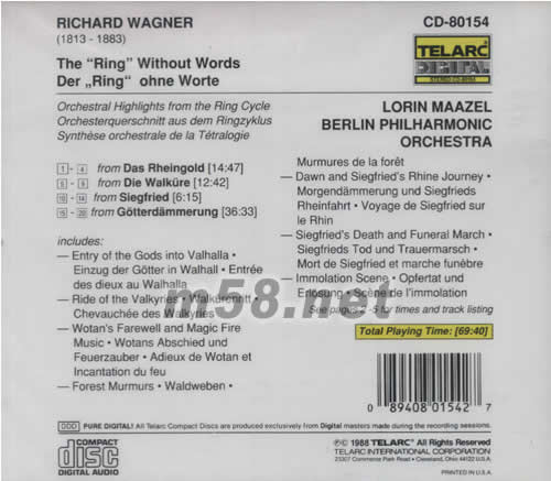 洛林·馬澤爾 - 瓦格納:無言的指環THE RING WITHOUT WORDS專輯背面圖片