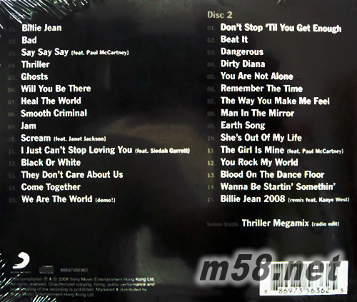 KING OF POP HONG KONG COLLECTION(慶祝50歲生日香港紀念版) 黑色封面 2CD專輯背面圖片