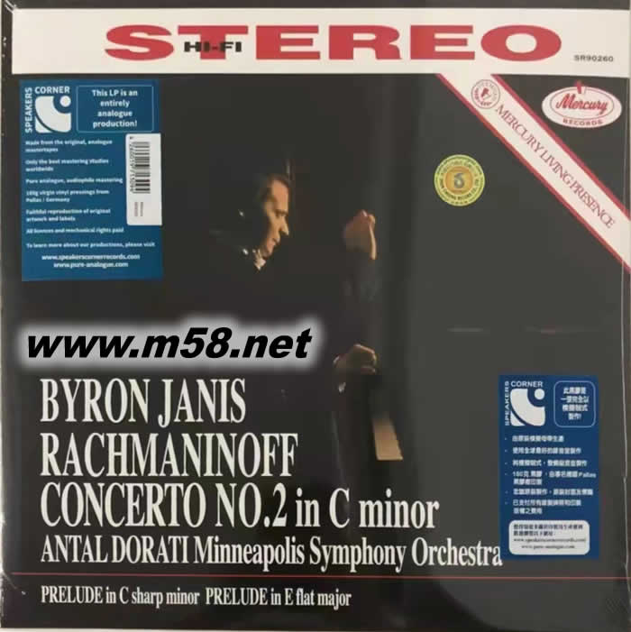 拉赫瑪尼諾夫:第2鋼琴協(xié)奏曲、前奏曲 RACHMANINOFF CONCERTO NO.2 IN C MINOR 黑膠(m58.net) <拉赫瑪尼諾夫:第2鋼琴協(xié)奏曲、前奏曲>LP,賈尼斯鋼琴,多拉蒂指揮,明尼蘇達(dá)交響樂(lè)團(tuán),水星LIVING PRESENCE系列,榜上名盤(pán)。原裝模擬母帶生產(chǎn),純模擬制式,發(fā)燒級(jí)混音制作,180克黑膠,德國(guó)名廠PALLAS壓制。