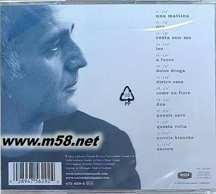 UNA MATTINA 一天早上(意大利鋼琴家)(m58.net) 意大利鋼琴家和作曲家 Ludovico Einaudi 魯多維科·艾奧迪 1955年出生于意大利都靈,他的母親也是一位鋼琴家,從小就受到了鋼琴音樂的熏陶。在米蘭音樂學(xué)院學(xué)習(xí)時獲得了意大利著名的作曲家、指揮家和音樂教育家 Luciano Berio 盧西恩·貝利奧 的指導(dǎo),并獲得了作曲學(xué)位。他的音樂總被認為是容易接近和可信的,被描述為最低綱領(lǐng)主義者,古典,氛圍,當(dāng)代和生動感人的受歡迎的聲音,曲風(fēng)深受巴哈、莫扎特、肖邦等音樂家的影響,古典大氣而不乏現(xiàn)代感。 Ludovico Einaudi 魯多維科·艾奧迪 本來從事比較嚴肅的交響音樂創(chuàng)作,最初為一些芭蕾舞劇配樂,以古典音樂為主。1996年開始發(fā)行自己獨特風(fēng)格的個人專輯《Le Onde》,并獲得世人的矚目和贊譽,此外他還進入電影配樂領(lǐng)域,為電影《LuceDeiMiei Occhi》創(chuàng)作的音樂在2002年獲得了意大利最佳電影配樂獎,還有其他3個國際獎項。他的作品追求簡約主義的風(fēng)格,吸取了世界音樂和流行音樂的各種元素,寧靜優(yōu)美,又充滿沉思和內(nèi)省的氣質(zhì)。與一些世界音樂圈的大師如亞美尼亞Duduk演奏家 Djivan Gasparian、馬里Kora琴演奏家 Ballake Sissoko 的合作,為他的作品增加了更多的地域與音樂融合的表現(xiàn)力。2006年《Divenire演變》專輯,音樂主題繼承了早先作品的思緒和簡約風(fēng)格,除鋼琴之外,Ludovico Einaudi 魯多維科·艾奧迪 擴展他的音樂框架,與利物浦皇家愛樂樂團合作,讓音樂內(nèi)涵愈發(fā)充滿含張力,強烈,憂郁,冥想和美麗。 Einaudi早先專門從事古典音樂的創(chuàng)作和電影的配樂,曲風(fēng)深受巴哈、莫扎特、肖邦和法利亞.M等音樂家的影響。80年代中后期轉(zhuǎn)向更自由的創(chuàng)作風(fēng)格,意外地和新世紀音樂與極限主義走進同路。意大利音樂家Ludovico Einaudi,魯多維科.艾奧迪,本來從事比較嚴肅的交響音樂創(chuàng)作,進入80年代中期之后才開始嘗試用新的形態(tài)來進行進行音樂制作和電影配音創(chuàng)作,卻沒有想到因此進入newage領(lǐng)域而一發(fā)不可收拾.Ludovico Einaudi無疑有著更為扎實和渾厚的古典鋼琴和交響樂作曲功底和才華,使得他的音樂渾然天成,盡管只是獨奏,氣勢依然獨到.