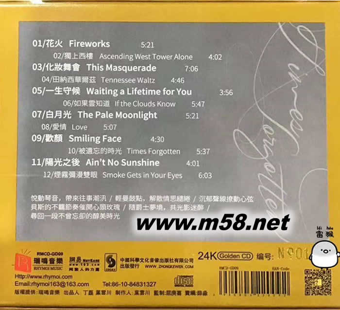 01. 花火 Fireworks 5:21 02. 獨上西樓 Ascending West Tower Alone 4:02 03. 化妝舞會 This Masquerade 7:06 04. 田納西華爾茲 Tennessee Waltz 4:46 05. 一生守候 Waiting a Lifetime for You 3:56 06. 如果云知道 If the Clouds Know 5:47 07. 白月光 The Pale Moonlight 5:21 08. 愛情 Love 5:07 09. 歡顏 Smiling Face 4:30 10. 被遺忘的時光 Times Forgotten 5:37 11. 陽光之后 Ain't No Sunshine 4:01 12. 煙霧彌漫雙眼 Smoke Gets in Your Eyes 6:03