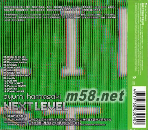 01. Bridge to the sky 02. NEXT LEVEL 03. Disco-munication 04. EnergizE 05. Sparkle 06. rollin' 07. GREEN 08. Load of the SHUGYO 09. identity 10. Rule 11. LOVE 'n' HATE 12. Pieces of SEVEN 13. Days 14. Curtain call