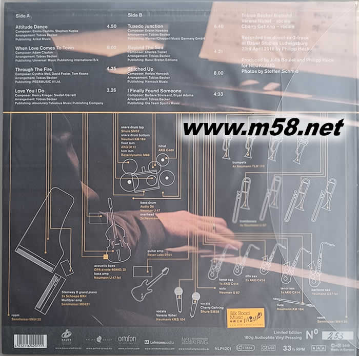 1. 托比亞斯.貝克爾(Tobias Becker)領導的大樂隊(Tobias Becker Bigband)於2013 年憑[生活流(Life Stream)]出色的表現而奪得「德國樂評人2013年年度 大獎(Award of German Record Critics 2013)」后聲名鵲起 ,每次公開演出都獲得好如潮,最近更被邀為公認製作要求極之嚴格,演奏和演唱者技術水平至高和有豐富演出經驗的「純模擬黑膠盤系列(AAA Series)」錄製樂隊最新現場實況演出專輯,給予樂迷莫大的喜訊。