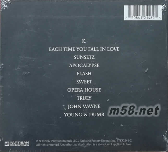 1 K. 2 Each Time You Fall In Love 3 Sunsetz 4 Apocalypse 5 Flash 6 Sweet 7 Opera House 8 Truly 9 John Wayne 10 Young & Dumb