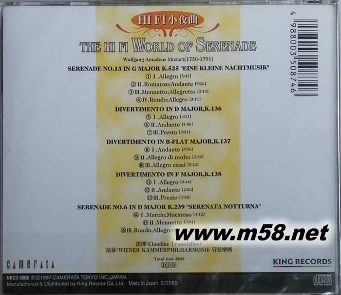 HIFI小夜曲 The Hi Fi World of SERENADE(m58.net) 弦樂錄音中之罕有精品 樂聲流暢無暇 音色通透清麗 定位層次分明