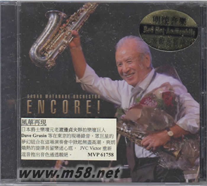 價格為估,以實到貨為準! 風華再現 Encore(m58.net) 日本爵士樂壇元老渡邊貞夫伙拍樂壇巨人DAVE GRUSIN等 在東京的現場錄音,眾巨星的夢幻組合在這場演奏會中掀起無盡高潮,爽朗熾熱的旋律長留樂迷心底。JVC VICTOR重新混音推出單色通透靚絕。