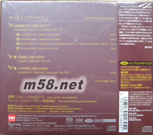 勃拉姆斯 D大調第二號交響曲 Brahms Symphony No.2 in D SACD (日本精裝限量版)專輯背面圖片