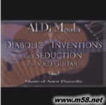 魔鬼的創(chuàng)作與誘惑 藍(lán)調(diào)吉它 Piazzolla皮亞佐拉 Diabolic Inventions and Seduction for Solo Guitar(m58.net) 結(jié)他一代宗師迪.美奧勒(Al Di Meola)的音樂(lè)理想是將他對(duì)音樂(lè)的洞察力以切分音的節(jié)奏概念演繹音樂(lè)作品,風(fēng)格與原作有極大的差異。他以出神入化的木結(jié)他演奏技巧,採(cǎi)用其對(duì)音樂(lè)的理念,演繹探戈天皇皮亞佐拉(Astor Piazzolla)多首經(jīng)典名作,優(yōu)美的旋律、創(chuàng)新的意念、攝人的技巧,使你全面體會(huì)結(jié)他誘人的魅力。 樂(lè)評(píng)精選 《Sea of Tranquility—Hugh Dark》:「"他不費(fèi)吹灰之力,利用他雙手一絲不茍地利用3個(gè)八度音階便將音樂(lè)的文化背景全面顯現(xiàn)。在此錄音中,他鉆研及擴(kuò)闊音域達(dá)致豐厚優(yōu)美的音質(zhì),使音樂(lè)推上更高層次,極為抒情"…"要在此CD中選擇最佳的一首樂(lè)曲會(huì)極不公平,因?yàn)槊恳皇讟?lè)曲都惹人喜愛(ài),音色飽滿輕盈的敲擊樂(lè),襯托得更令人陶醉。"…"迪.美奧勒的弗拉門科(flamenco)結(jié)他充滿動(dòng)力及節(jié)奏感,配合非洲的贊比鼓(djembe)及卡洪(cajon)敲擊,給你最高的聽(tīng)覺(jué)享受。"…"此CD給你完全的模擬錄音感覺(jué),黑膠味道極重,音色淳厚而溫暖。」