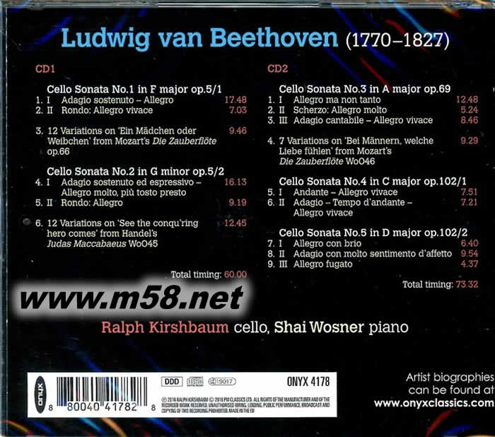 大提琴與鋼琴 BEETHOVEN : COMPLETE SONATAS & VARIATIONS FOR CELLO & PIANO 劉漢盛推薦 超越巔峰200擊(m58.net) RALPH KIRSHBAUM 大提琴