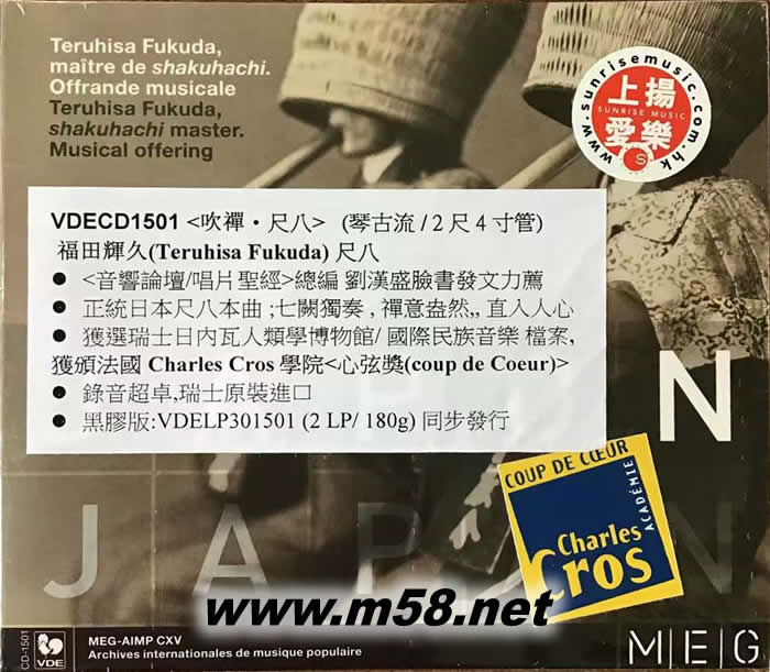 吹禪 尺八(m58.net) 正統(tǒng)日本尺八名演, 獲選入瑞士日內(nèi)瓦人類學博物館/ 國際民族音樂 檔案; 獲頒法國Academie Charles Cros學院<心弦獎(coup de Coeur)> 七闕獨奏 , 禪意盎然, 直入人心 錄音超卓,瑞士原裝進口