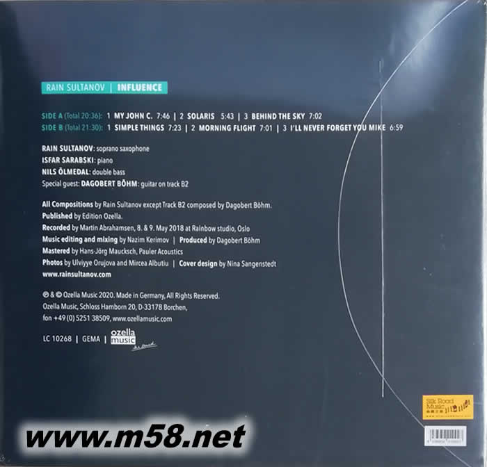 韋恩 蘇丹諾夫 Influence 感染力( 薩克斯、鋼琴、大提琴、吉它) 黑膠專輯背面圖片