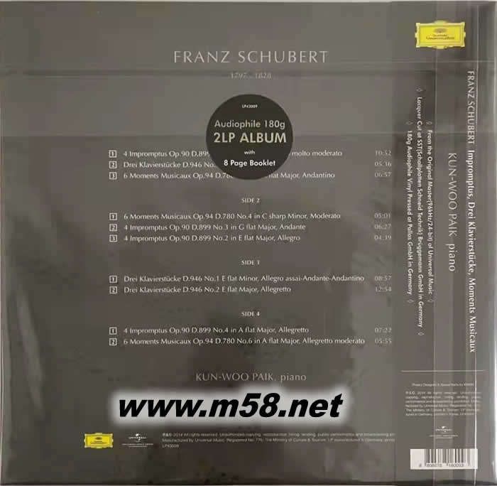 舒伯特 : 即興曲、樂興之時、鋼琴小品 SCHUBERT : IMPROMPTUS, DREI KLAVIERSTUCKE, MOMENTS MUSICAUX 雙黑膠(m58.net)