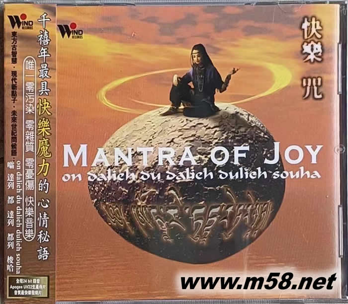快樂咒(m58.net) 製作人 : 徐清原 製作群 : 作曲:徐清原,張永智(#5)|演出:小提琴/ 鋼琴/電吉他/人聲 結合東方古老智慧及現代新點子,全輯以”嗡 達列 都 達列 都列 梭哈”為主角,發展成五段不同風格的樂曲~既有恩雅式的空靈唱腔、喉韻十足的低沉吟誦、線條明快的印度曲風及溫暖的民謠色彩,亦夾帶了心靈音樂中難得一見的輕舞曲節奏。