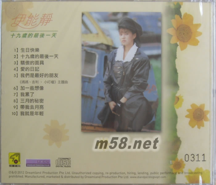十九歲的最后一天 (新加坡限量版)(m58.net) 伊能靜的第二張專輯十九歲的最后一天, 在1987 年推出的時候,奠定了她在流行樂壇中的才華美少女的地位。專輯中的歌曲大部分都由她親自填詞,造型也由她自己打造。特別一提的是這張專輯還是由已故的搖滾歌手薛岳親自制作,更點名了十九歲的伊能靜未來會在樂壇大放光芒。
