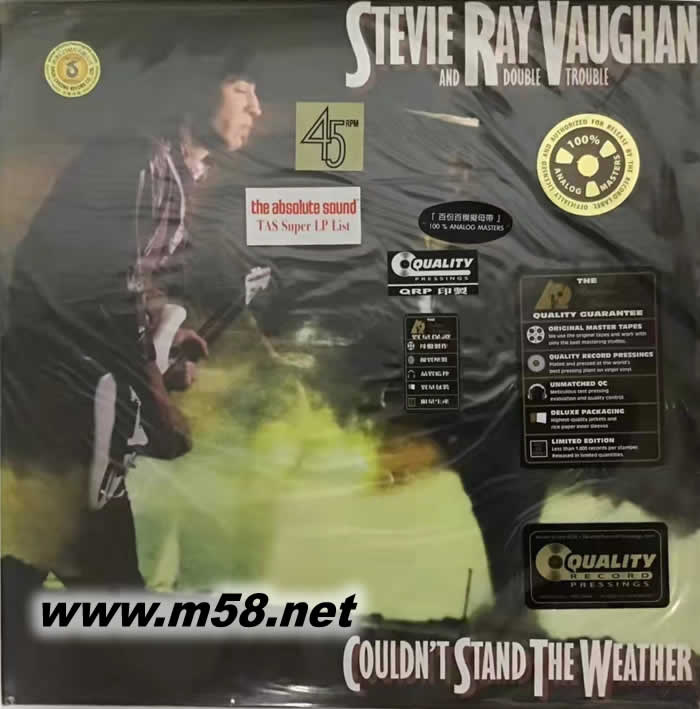 藍調吉它手 COULDN'T STAND THE WEATHER受不了這種天氣 45轉 雙黑膠(m58.net) Stevie Ray Vaughan是80—90年代最受歡迎的Blues風格的吉它演奏家,加入了鄉村和爵士樂等多種音樂元素,為以后的Blues音樂拓寬了道路。而他快速并充滿激情的吉它演奏更是確立了他一代吉它大師的地位。
