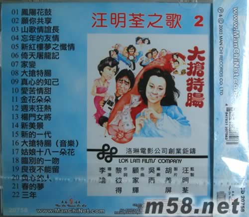 01. 鳳陽花鼓 02. 愿你共享 03. 山歌情誼長 04. 忘年的友情 05. 新紅樓夢之懺情 06. 倚天屠龍記 07. 家變 08. 大搶特腸 09. 真心的知己 10. 愛苦情甜 11. 金花朵朵 12. 周末狂熱 13. 楊門女將 14. 新美景 15. 新的一代 16. 大搶特腸(音樂) 17. 姑娘十八一朵花 18. 臨別的一吻 19. 良夜不能留 20. 負心的人 21. 春的夢 22. 三年