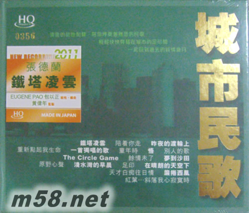 城市民歌 (HQCD)綠色封面限量版(m58.net) 清脆的結他和聲,陪你哼奏著熟悉的民歌,輕輕快快穿插在城市的足印間... 一起回到過去的純情歲月…… 細味.城市民歌 喝乎聲、吵鬧聲、狗吠聲、水聲、車聲、風聲、雨聲 太多聲音 甚麼也聽不到 耳朵需要喘息 心靈需要凈化 放輕松步伐 純真的聲音 你聽到嗎? 張德蘭 關正杰 盧冠廷 羅敏莊 如夢 李國祥 張祟德 張崇基 李麗珊 夏韶聲 Raidas 周文馨 鍾鎮濤 林志美 麥潔文 黃秀儀 蔡美璞 鄧惠欣 [NEW RECORDING 2011] 張德蘭 鐵塔凌云 EUGENE PAO包以正 結他。編曲 黃偉年 監制