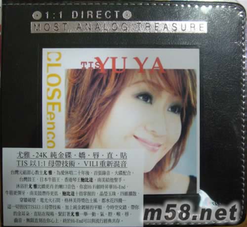 尤雅 TIS YU YA CLOSENCOUNTER 24k 金碟(m58.net) 尤雅-24K 純金碟 嬌 唇 直 貼 TIS 以1:1母帶技術 VILI重新混音 臺灣元祖甜心教主尤雅,為愛休唱二十年后,首張錄音,大碟配合,臺灣鼓王,日本牛筋王,香港琴王鮑比達,南美吉它圣手. 淋浴于尤雅比嬌更肖的嫩口音色,你套Hi Fi頓時升華Hi-End,牛筋更彈牙,南美鼓潛得很低,鮑比達十指掌握的,晶瑩玉珠,四維擴散,穿墻破壁,電光火石間,格林美得獎色士風,都水花四濺... 這一切皆因TIS以1:1母帶技術,加上純金鍍屑的平順,令時空交錯,帶你的金耳朵,直貼現場,緊盯著尤雅一舉一動,氣 腔 喉 唇 齒音,無限直刻在你心上,終于Hi-End可以與流行經典共存.