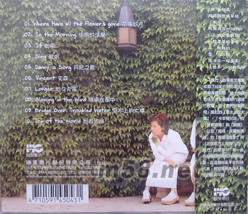 1、WHERE HAVE ALL THE FLOWER GONE花落何方 2、IN THE MORING 生命的清晨 3、IF 如果 4、SING 歡唱 5、DANNY‘S SONG 丹尼之歌 6、VINCENT文森 7、LONGER 地久天長 8、BLWING IN THE WIND飛揚在風中 9、BRIDGE OVER TROUBLED WATER惡水上的大橋 10、TOP OF THE WORLD 世界真端