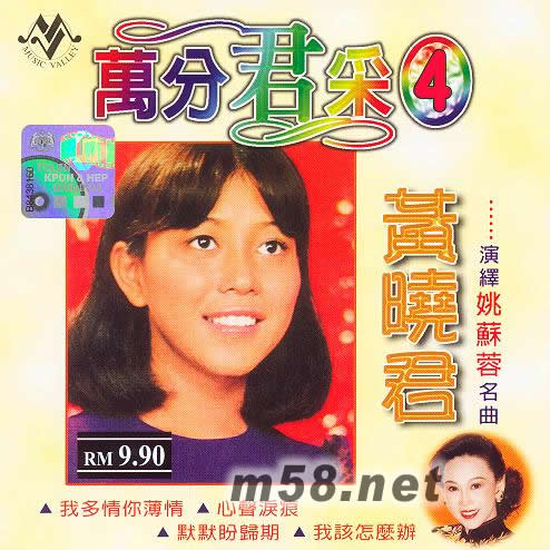 萬分君采4(m58.net) 姚蘇蓉有"淚盈歌后"之稱,那是因為她早期曾經(jīng)以一首舊曲"秋水伊人",唱得淚聲齊下,令人感動之余而封了她這個稱號,她唱的歌曲都是以感情歌曲為主,表現(xiàn)得非常投入。黃曉君演繹姚蘇蓉的歌曲,聽起來的確很考功夫,有時候,一人最重要的是有自己的演唱風(fēng)格,黃曉君的唱法是一個歌壇的異數(shù),她強(qiáng)調(diào)的是自己的唱法,所以,無論她唱誰的歌曲都不會有原唱者的影子,像這張專輯里的"我多情你薄情","心聲淚痕","愛的路多么苦","我該怎么辦"等,這些稍為苦情的歌曲,黃曉君同樣的表現(xiàn)得很哀怨,唱輕快的歌曲,她的表現(xiàn)就很輕松呢!