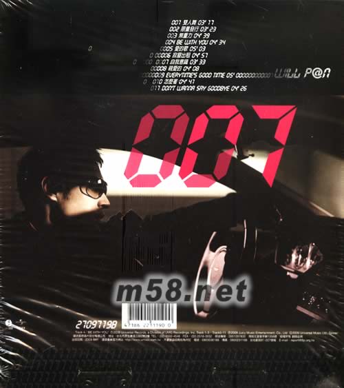 零零七 臺灣限量預購版 送W7造型瑋戒(m58.net) 預購贈品: W7送乙型戒乙只 黑白兩款隨機發送 潘帥時尚寫真 精彩演繹輕熟帥勁 潘偉柏X阿肯AKON合唱雷電搖擺_BE WITH YOU 輕熟瑋柏R&B抒情舞曲_雙人舞 瑋柏深情創作_無重力