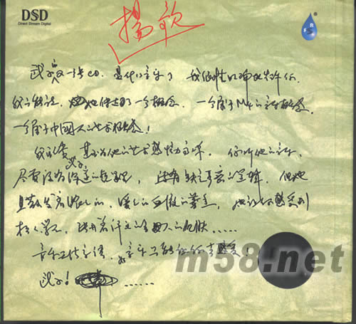 價格為估,以實到貨為準! 揚歌YONG GE(m58.net) 此張專輯1996年錄于上海 主要演奏樂器有:鋼琴、中阮、簫、月琴琵琶、新笛、二胡、何弦、古琴 這是一張意境悠遠的民樂專輯,曲調(diào)中庸,熱烈不足,恬淡有余。用中國的民樂演奏西洋經(jīng)典名曲,也是一種“中西合壁”。聽起來別有一番風(fēng)味,表是西洋的表,芯是中國的芯,構(gòu)成了一幅既是中國畫的,又是油畫的音樂畫面。
