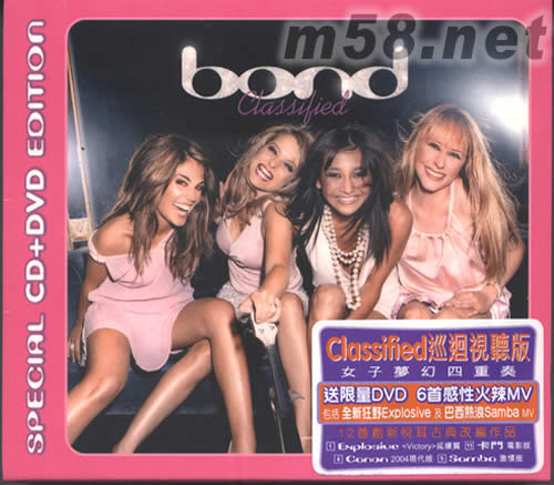 CLASSILIED(CD+DVD限量版)(m58.net) 女子夢幻四重奏 送限量DVD 6首感性火竦MV 包括全新狂野EXPLOSIVE及巴西熱浪SAMBA 12首創(chuàng)新悅耳古典改編作品 1、EXPLOSIVE(VICTORY)延續(xù)篇 11、卡門電影版 4、CONON2004現(xiàn)代版 5、SOMBO激情版