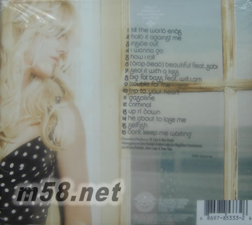 1. Till The World Ends 舞到世界盡頭 2. Hold It Against Me 極限情挑 3. Inside Out 臣服 4. I Wanna Go 完全解放 5. How I Roll 飆舞 6. (Drop Dead) Beautiful 美的冒泡 7. Seal It With A Kiss 激吻 8. Big Fat Bass 誘人男聲 (黑眼豆豆首腦PK過招) 9. Trouble For Me 找麻煩 10. Trip To Your Heart 乘虛而入 11. Gasoline 愛情火藥 12. Criminal 愛情騙徒