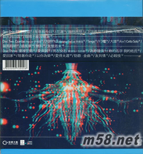 CD 1 01. 錢錢錢錢 02. 年年有今日 03. 花灑 04. 幾時再見 05. 下次再見 06. 歡樂今宵 07. 啦啦 / 藍(lán)天與白云 08. 眼睛不能沒眼淚 CD 2 01. Czardas - Trey Lee 02. 大師作品 03. Tango - Music 04. 叮當(dāng) 05. 大雄 06. 4 x 1 Cello Solo - Music 07. 羅馬假期 08. 順風(fēng)車 09. 煞科 10. 失憶周末 CD 3 01. 重復(fù)犯錯 02. 愛與誠 03. 男左女右 - 古巨基+關(guān)淑怡 04. 為你鐘情 05. 你的名字 我的姓氏 06. 愛回家 07. 陪著你走 08. 以你為榮 09. 愛得太遲 10. 勁歌.金曲 11. 友共情 12. 必殺技
