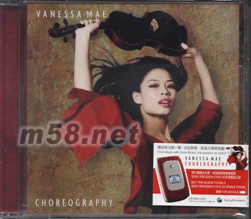 價格為估,以實到貨為準! VANESSA-MAE CHOREOGRAPHY(m58.net) 轉投新力第一聲 火紅熱情 新派小提琴瑰麗 FIST ALBUM WITH SONY MUSIC,THE PQSSION OF VIOLIN!! VANESSA--MAE CHOREOGRAPHY 現凡購買此碟,參加抽獎有機會贏取:SONY ERICSSON Z100 3G手提電話一部 BUY THIS ALBUM TO WINA SONY ERICSSON Z1010 3G MOBILE PHONE 詳情FOR DETALS WANESSA MAE善長演繹那一種樂器? WHICH MUSIC INSTRUMENT VANESSA MAE PLAYS WITH? A:PIANO B:VIOLIN C:FLUTE 請將正確答案連同CD正面部份標貼,個人資料,電郵地址及聯絡電話,寄回以下地址,即有機會贏取SONY ERCSSON Z10 10 3G手提電話一部。(截止日期:31-10-2004)