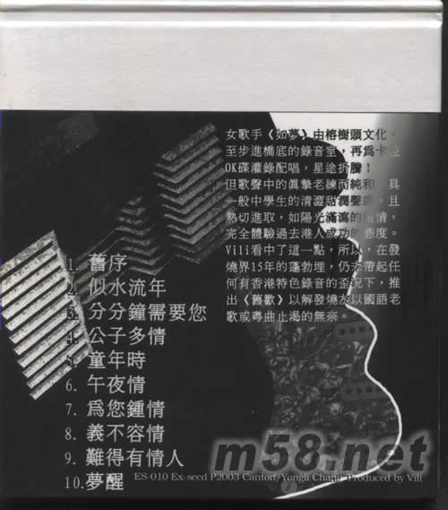 由于發燒友對本專輯的再版之聲不斷,VILI決定以首版的懷舊音效,再次舊歡重現。如夢之可以成為長存不配的女歌王,可能她并不是唱情歌,而是唱給她深心處初戀的舊歡聽,你的往日情有幾刻骨,舊歡如夢就有多銘心。