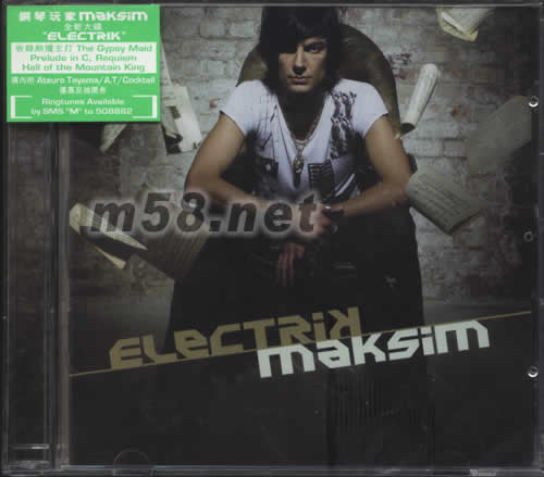ELECTRIK(m58.net) 鋼琴玩家MAKSIM全新大碟ELECTRIK 收錄熱播主打THE GYPSY MAID PRELUDE IN C,REQUIEM HALL OF THE MOUNTAIN KING 碟內(nèi)附ATSURO TAYAMA/A.T/COCKTAIL 優(yōu)惠及抽獎券 RINGTUNES QVAILAIE BY SMS"M "TO 508882