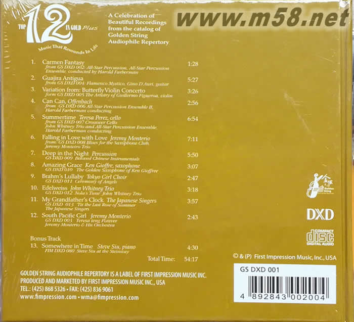 Top 12 in Gold Plus DXD 12金牌 金碟(m58.net) 24BIT 352.8KHZ MASTERING IN 24K GOLD
