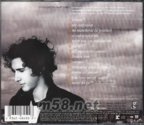 1、OCEANO 2、MY CONFESSION 3、MI MANCHERAI(IL POSTINO) 4、SI VOLVIERAS A ME 5、WHEN YOU SAY YOU LOVE ME 6、PER TE 7、ALL'IMPROVVISO AMORE 8、BROKEN VOW 9、CARUSO 10、REMEMBER WHEN IT RAINEB 11、HYMNE A L'AMOUR 12、YOU RAISE ME UP 13、NEVER LET GO