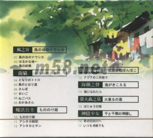 風(fēng)之谷 風(fēng)の谷のナゥツカ 01. 風(fēng)の谷のナゥツカ 02. はるかな地へ 03. 風(fēng)の妖精 龍貓 となりのトトロ 04. となりのトトロ 05. 風(fēng)のとおり道 06. さんぽ 07. まぃご 08. ねごバス 09. おかぁさん 魔法公主 もののけ姬 10. もののけ姬 11. ァシタカ 記 12. ァシタカとサン 歡喜碰碰貍 平成貍合戰(zhàn)ぽんぼこ 13. ァヅァこの街で 海潮之聲 海がきこぇる 14. 海になれたち 螢火蟲之墓 火垂るの墓 15. はにゆうの宿 神隱少女 千と千尋の神隱し 16. ぁの日の川へ 17. ぃっも何度でも