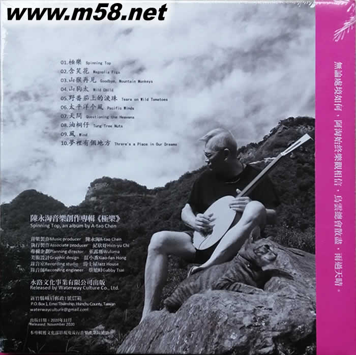 01. 極樂 Spinning Top 02. 含笑花 Magnolia Figo 03. 山猴再見 Goodbye, Mountain Monkeys 04. 山狗太 Wild Child 05. 野番茄上的淚珠 Tears on Wild Tomatoes 06. 太平洋個(gè)風(fēng) Pacific Winds 07. 天問 Questioning the Heavens 08. 油桐仔 Tung Tree Nuts 09. 風(fēng) Wind 10. 夢(mèng)里有個(gè)地方 There's a Place in Our Dreams