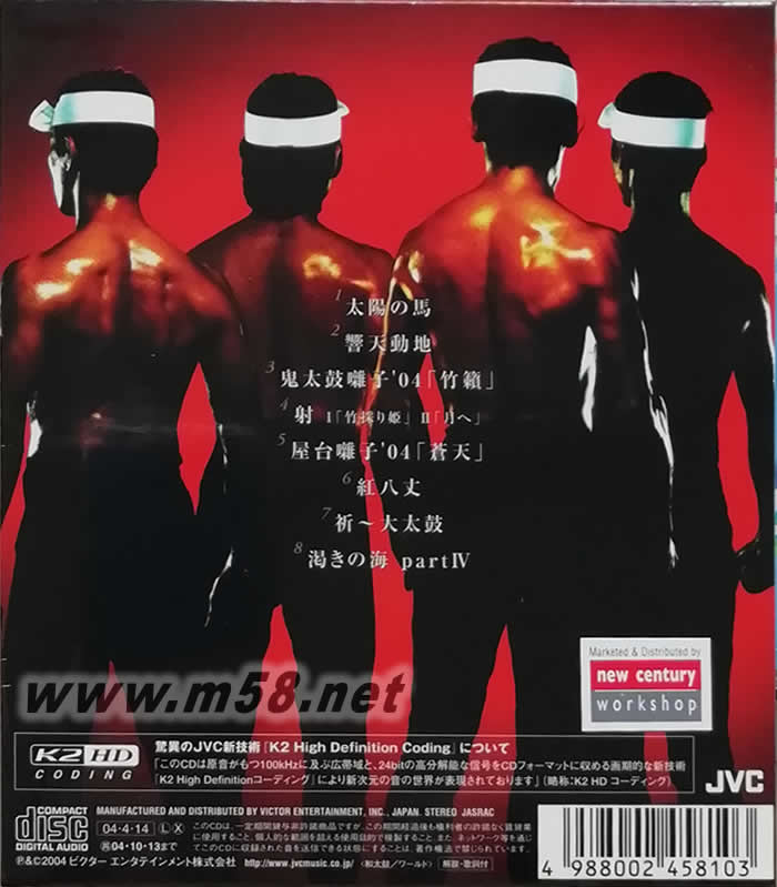 響天動地 K2HD 日本版(m58.net) J-002[鬼太鼓座驚天動地EX-Seed版]以獨家(k2 high definition)r 警界新技術,讓您體驗新次元的音樂世界,從 suntory hall 傳出驚天動地的太鼓,敲打間猶如錄魂的呼喚,更像來自生命根源的吶喊,闊別5年的新專輯是繼[富獄百景],[怒濤萬里]后的第三部完結(jié)作品.一張絕對不能錯過的驚天動地所次的音樂作品.[連等娛樂 強力推薦]