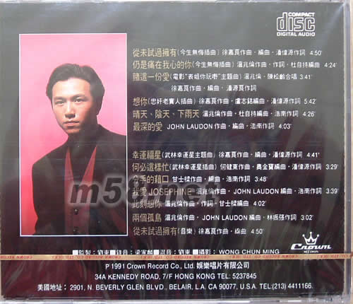1、從未試過擁有(今生無悔)插曲 2、仍是痛在我心的你(今生無悔)插曲 3、賭這一份愛(表姐你玩)主題曲 4、想你(忠奸老實人)插曲 5、晴天,陰天,下雨天 6、最深的愛JOHN LAUDON 7、幸運福星(武林運星)主題曲 8、何必這樣忙(武林幸運星)插曲 9、分手的借口 10、我愛JOSEPHINE 11、此刻想你 12、兩個孤島 13、從未試過擁有(音樂)