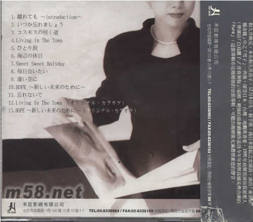 價格為估,以實到貨為準! DEAREST(m58.net) 請參看專輯正、背面大圖 和久井映見,本名和久井良子,12月8日生,射手座,為日本當紅之女演員,演出[東京曲履奇緣]呂之[雪子]一角后,深受日本、臺灣二地觀眾喜愛。1995年底與男演員獲原圣人(曾演出[白鳥麗子][青春無悔])結婚。婚后的最新戲劇作品為今年年初與高橋克典演的[PURE]:這張專輯亦是她婚后的首張專輯,可聽出也婚后充滿濃情蜜意的聲音。
